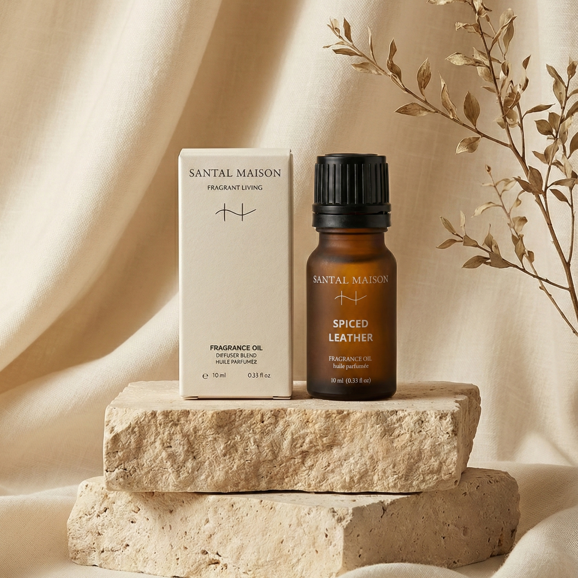 Wrap your space in the inviting warmth of Spiced Leather, a luxurious home fragrance oil inspired by Tom Ford Ombre Leather. This rich diffuser oil opens with warm, subtly spiced cardamom, softened by the floral elegance of jasmine sambac and the cool edge of violet leaf. As it settles, oakmoss, patchouli, and supple leather create a luxurious, textured warmth that lingers, evoking sophistication, sensuality, and understated confidence.